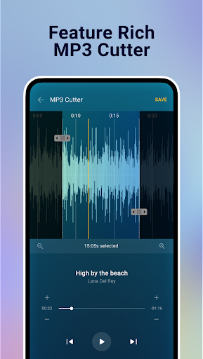 Cắt phần hay nhất của các bài hát âm thanh bằng trình phát nhạc này. Lưu những bản nhạc hay nhất của bạn làm nhạc chuông, báo thức, thông báo, tệp nhạc, v.v. bằng trình phát mp3 này.