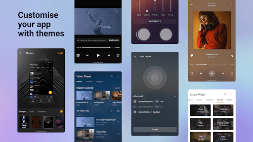 Tùy chỉnh ứng dụng nhạc với màu sắc, chủ đề và hình ảnh bạn chọn để nâng cao trải nghiệm phát nhạc của bạn. Với các chủ đề độc đáo và giao diện nền tuyệt đẹp, trình phát mp3 ngoại tuyến này khiến bạn muốn nhiều hơn nữa. Bạn