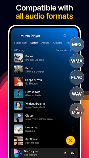 Muzio Player không chỉ là trình phát MP3 thông thường mà còn có thể phát các bài hát ở mọi định dạng. Trình phát ngoại tuyến này hỗ trợ các định dạng âm thanh như MP3, WMA, MIDI, WAV, FLAC, AAC, APE, v.v., mang đến cho bạn trải nghiệm âm nhạc không phải lo lắng.